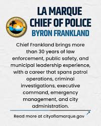 [ https://www.houstonpublicmedia.org/articles/galveston-county/2026/02/10/543050/city-of-la-marque-announces-byron-frankland-as-new-chief-of-police/ ]